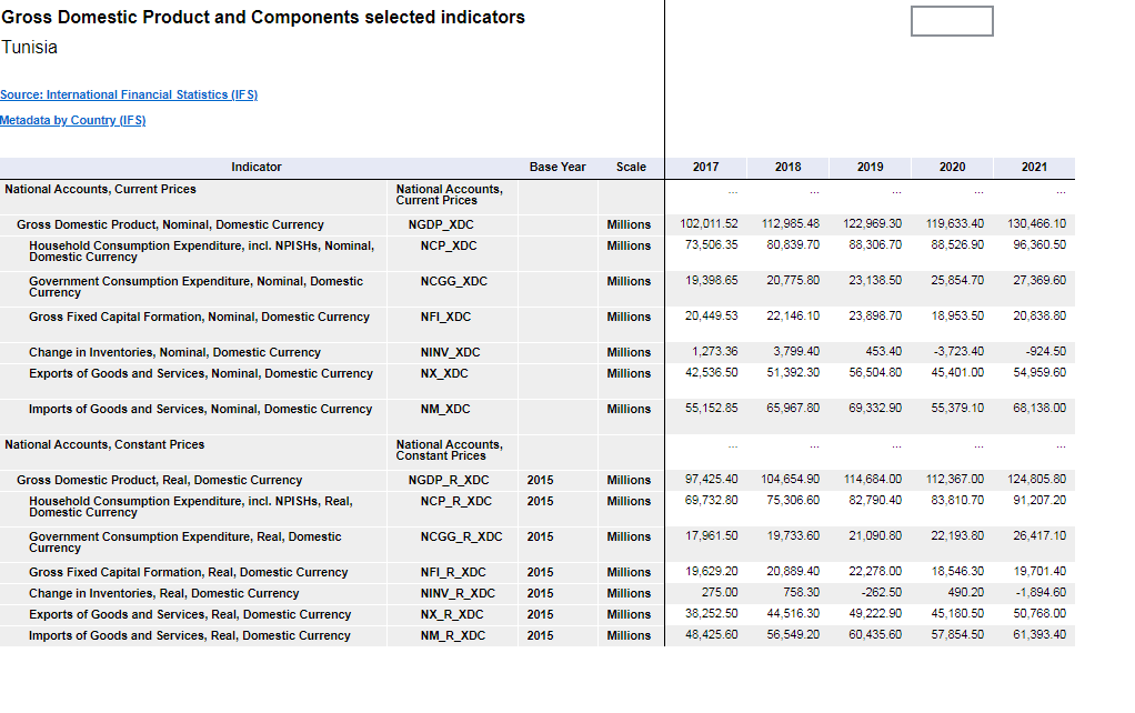 بيانات الاقتصادية لدولة تونس
