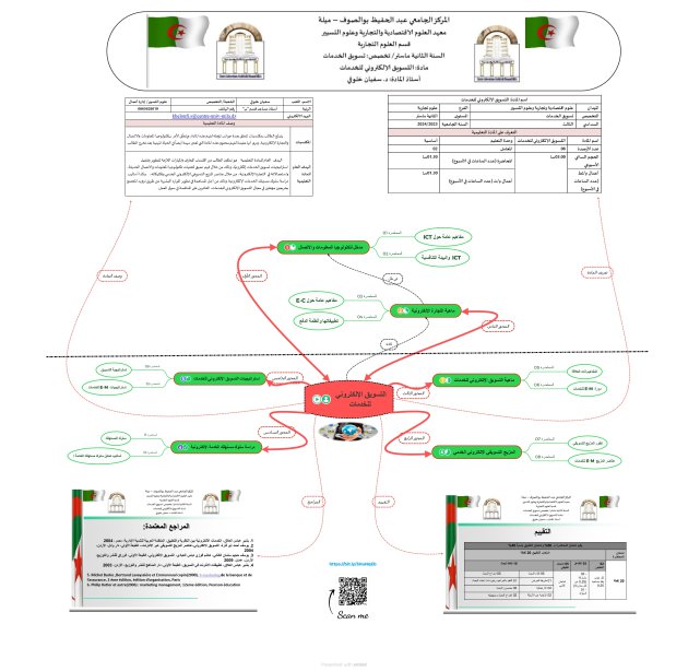 الهدف العام للمادة التعليمية هو تمكين الطالب من اكتساب المعارف والمهارات اللازمة لتطوير وتنفيذ استراتيجيات تسويق الخدمات إلكترونيا، وذلك من خلال فهم تكنولوجيا المعلومات والاتصال، والتجارة الإلكترونية، وسلوك مستهلك الخدمات الإلكترونية. وذلك من أجل المساهمة في تطوير الموارد البشرية عن طريق تزويد المجتمع بخريجين مؤهلين في مجال التسويق الإلكتروني للخدمات، القادرين على المنافسة في سوق العمل. عليه، سيتم التطرق في هذه المادة خلال هذا السداسي إلى المحاور التالية: