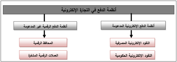 تشير أنظمة الدفع في التجارة الإلكترونية (e-commerce[1]) إلى: "الطرق التي يمكن للعملاء من خلالها الدفع مقابل المنتجات عبر الإنترنت". حيث، أحدثت أنظمة الدفع هذه ثورة في معالجة الأعمال من خلال تقليل المعاملات الورقية، وتكاليفها، وأعباء العمالة، كما أنها تساعد المؤسسات على توسيع نطاق وصولها إلى الأسواق. والشكل الموالي يوضح مختلف أنظمة الدفع في التجارة الإلكترونية: