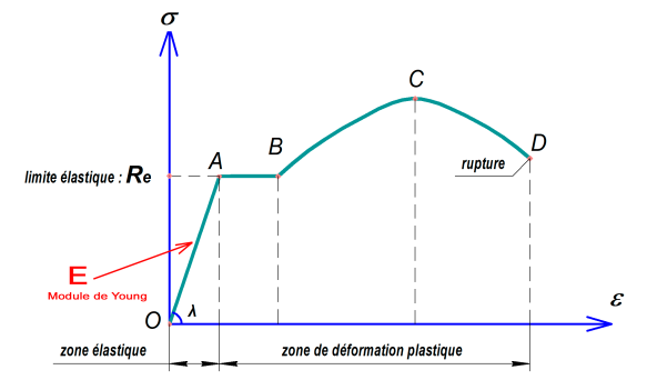 - Sa limité élastique (résistance limite) : σe ou Re.
