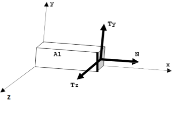 • Effort normal (N) : c’est la somme algébrique des projections sur la normale de la section de toutes les forces extérieures situées d’un même côté de la section considérée.