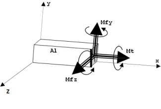 • Moment de torsion (Mt) : c’est la somme géométrique des moments par rapport à la normale à la section au centre de gravité de toutes les forces extérieures situées d’un même côté.