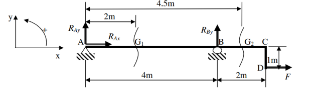 ∑M/z(A) =0 ; RBy (4)+ F (1)= 0 ; RBy = -F/4 = -1250N