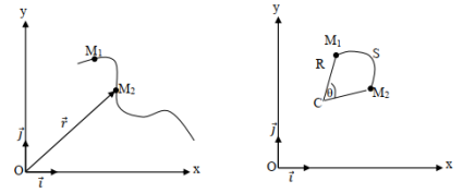 Curvilinear movement is characterized by a curvilinear trajectory which requires knowledge of the radius of curvature R and the center C.
