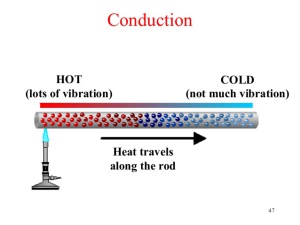 Heat transported through a stationary medium (solid or fluid without motion) by vibrational energy of molecules that increase with temperature.