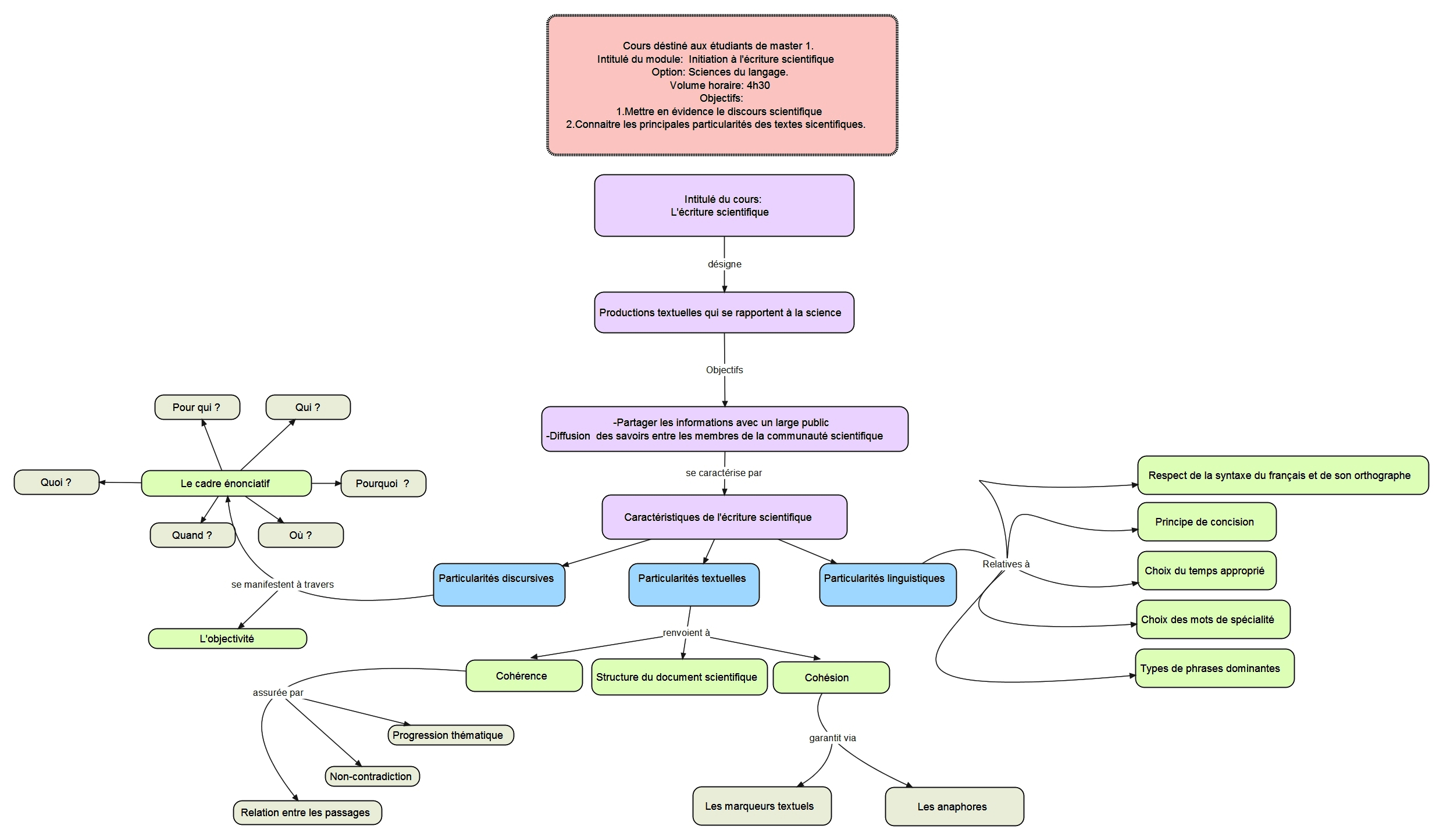 Aujourd’hui, l’information scientifique est incontestablement diffusée par le moyen de l'activité discursive dénommée actuellement "discours scientifique". Ce dernier regroupe les différentes productions textuelles qui se rapportent aux sciences. Leur élaboration se réalise d’une manière rigoureuse et objective dans le but de les partager entre chercheurs, scientifiques ou à l’intention d’un public plus large. Dans la sphère universitaire, le discours scientifique comprend toute production écrite ou orale réalisée dans le cadre de l’activité de recherche à des fins de construction et de diffusion du savoir. Afin d’assurer la rédaction scientifique, l’étudiant est amené à approfondir ses connaissances en la matière. Il doit connaitre les principales caractéristiques des écrits scientifiques que nous pouvons regrouper sous trois axes : caractéristiques énonciatives, textuelles et linguistiques.