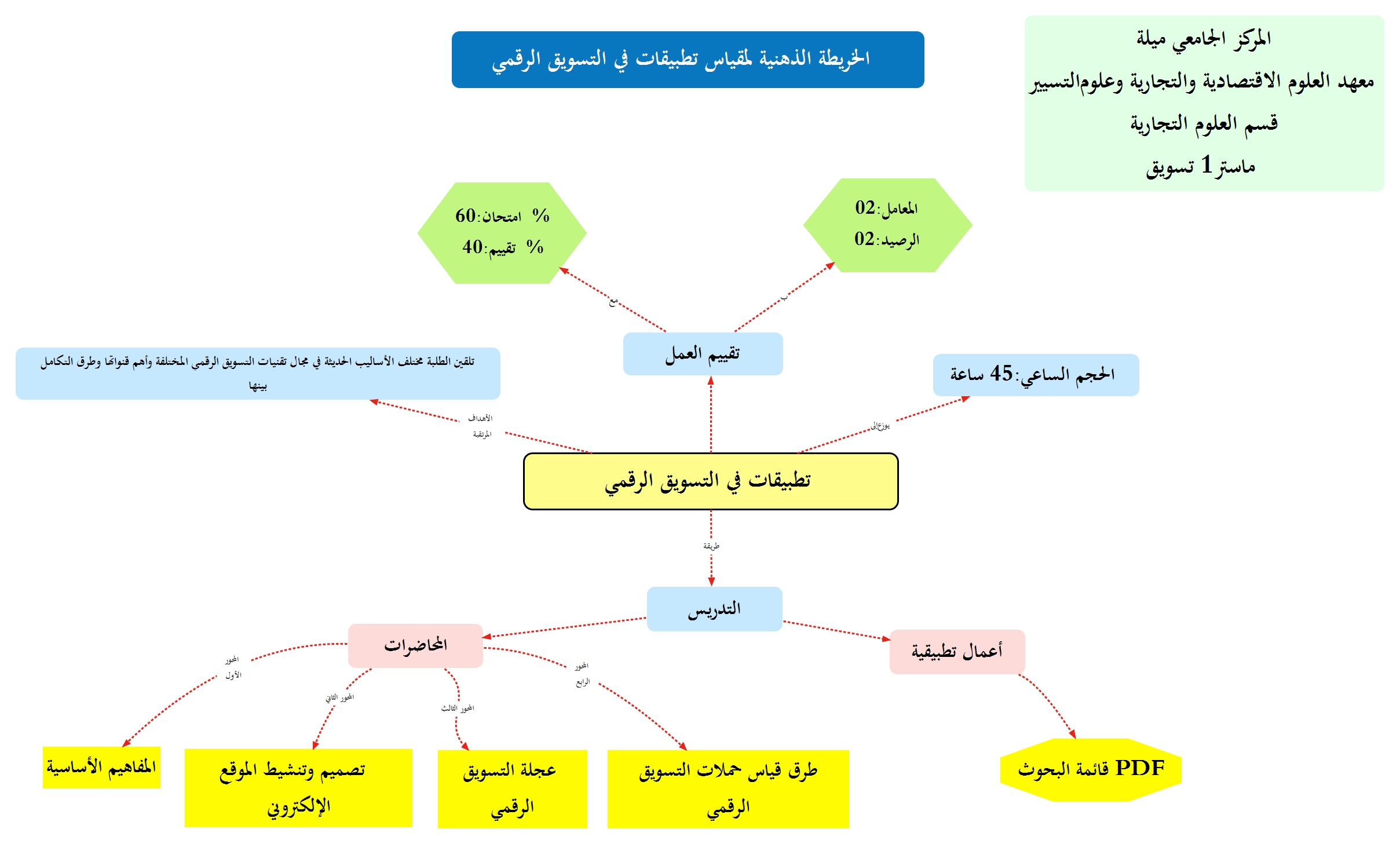 يستهدف هذا المقياس طلبة السنة أولى ماستر تخصص تسويق والمحاور التي تناولناها في هذا المقياس سوف تساعدهم على فهم العناصر المرتبطة بمفهوم التسويق الرقمي لأنه يعد جزءا أساسيا من استراتيجيات التسويق الحديثة، حيث يساعد الشركات على الوصول إلى جمهورها المستهدف بشكل أكثر فعالية وتحقيق أهدافها التسويقية بطريقة مبتكرة وقائمة على البيانات. وأيضا كل المحاور التي سوف يدرسها الطالب في هذا المقياس هي كلها عناصر أساسية تساعد الطالب على فهم التسويق الرقمي والإلكتروني ومن ثم التمكن من إسقاط ما تم تناوله نظريا على المؤسسة التي يتوجه إليها في إطار تربصه الميداني.