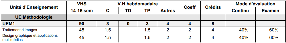 - En plus des techniques existantes, les étudiants sont amenés à réfléchir sur les difficultés liées à ce domaine (TPs, exposés).