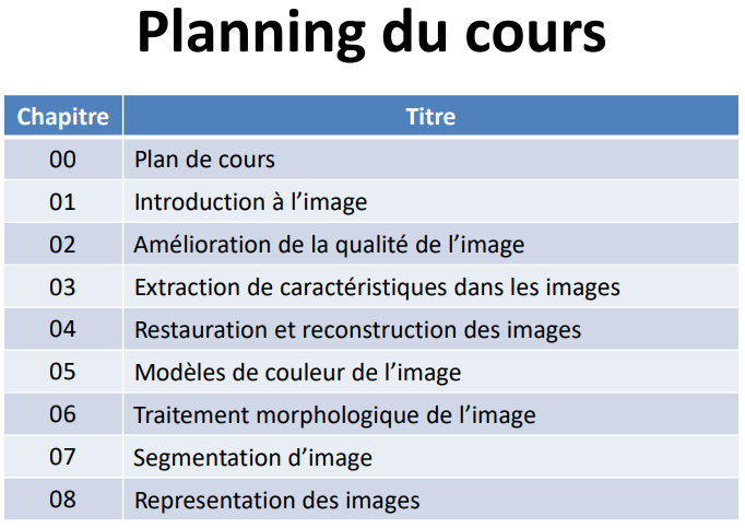 - Ce Cours constitue une introduction aux méthodes et techniques de base utilisées pour le traitement d’image.