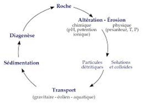 A sedimentary rock is a rock formed by the deposition of sediments. These sediments accumulate in a sedimentary basin (= accumulation site) in a marine or continental environment. This sedimentation takes place on the Earth's surface (a sedimentary rock is an exogenous rock). Sedimentary rocks result from the accumulation of sediments, usually deposited in layers or overlapping beds called strata. This is followed by diagenesis (= a set of physico-chemical processes) which leads to the hardening of the sediment and thus the formation of a rock. They result from the accumulation of various sediments, solid elements, and precipitation from solutions.