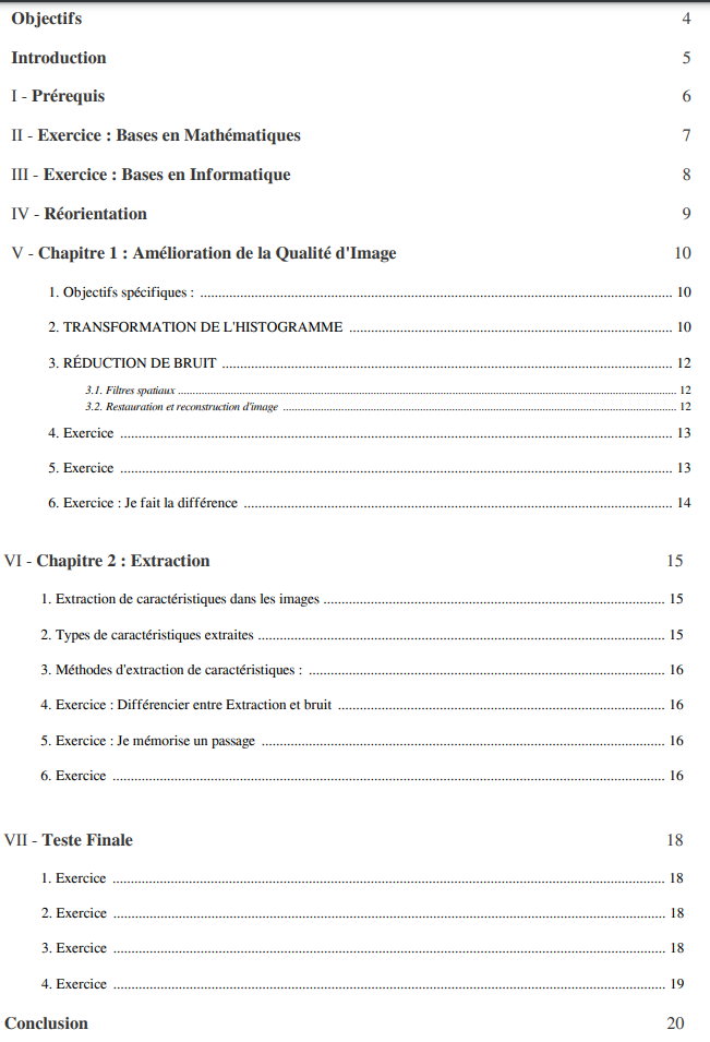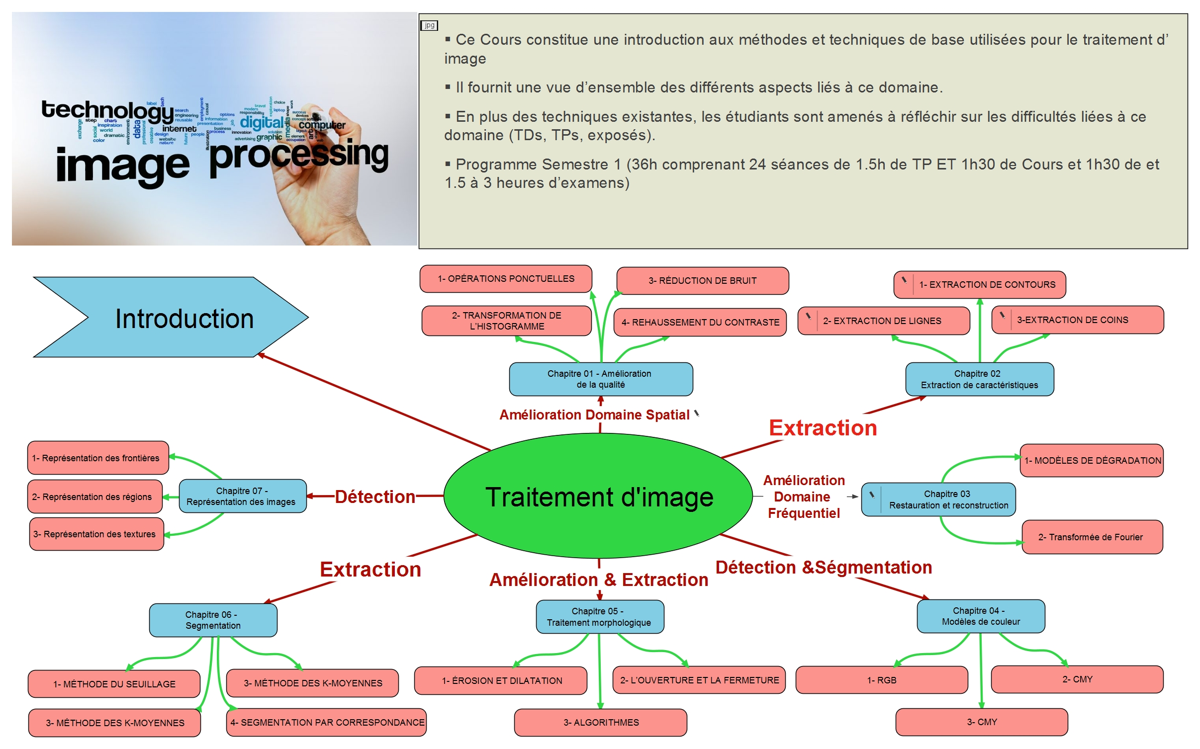 - Ce Cours constitue une introduction aux méthodes et techniques de base utilisées pour le traitement d’image.