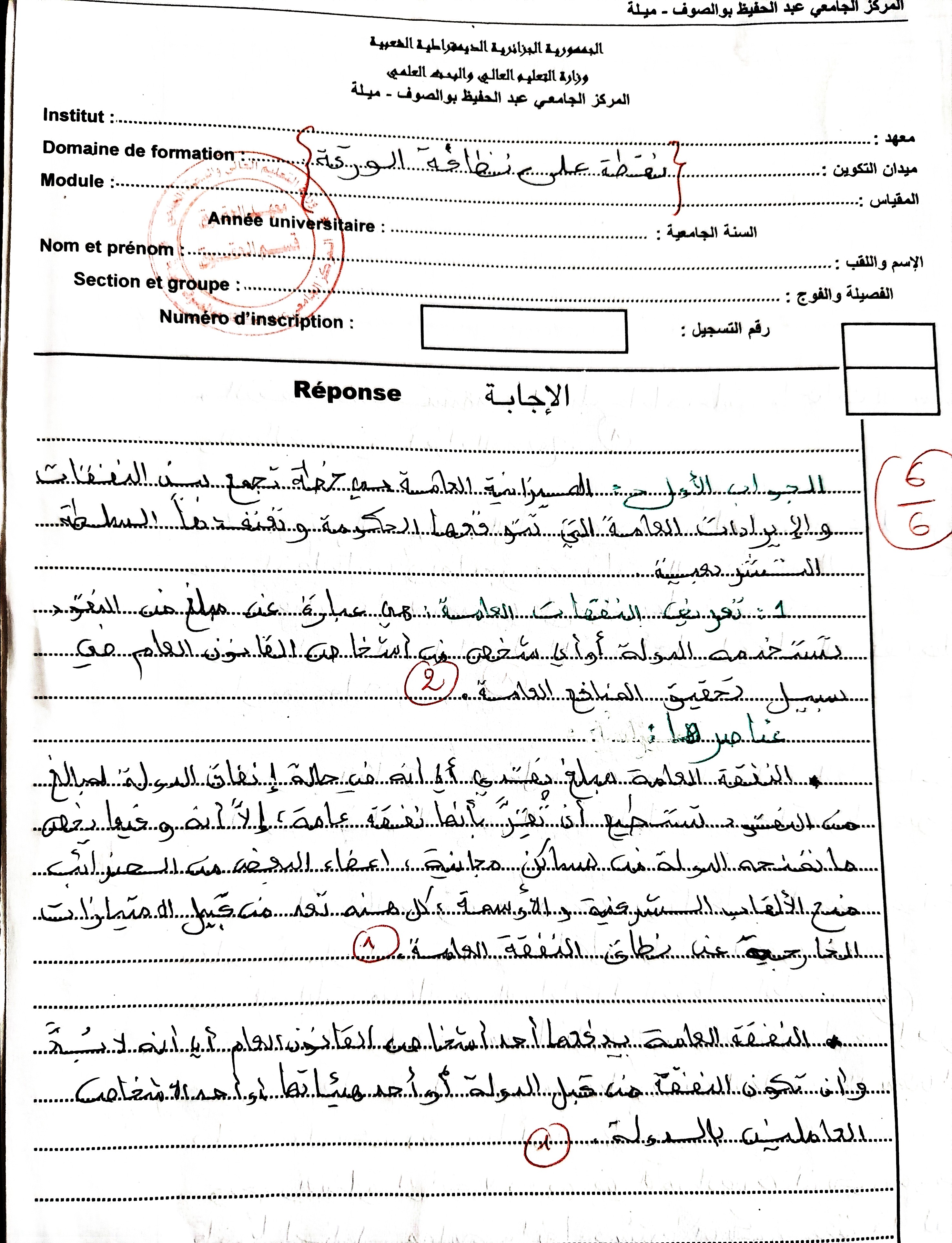 الإجابة النموذجية