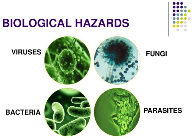 Biological hazards are living organisms that can contaminate food or surfaces and cause negative health effects on employees.