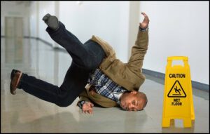 This risk depends on factors like the type of flooring material, presence of warning signs, cleaning procedures, and footwear.