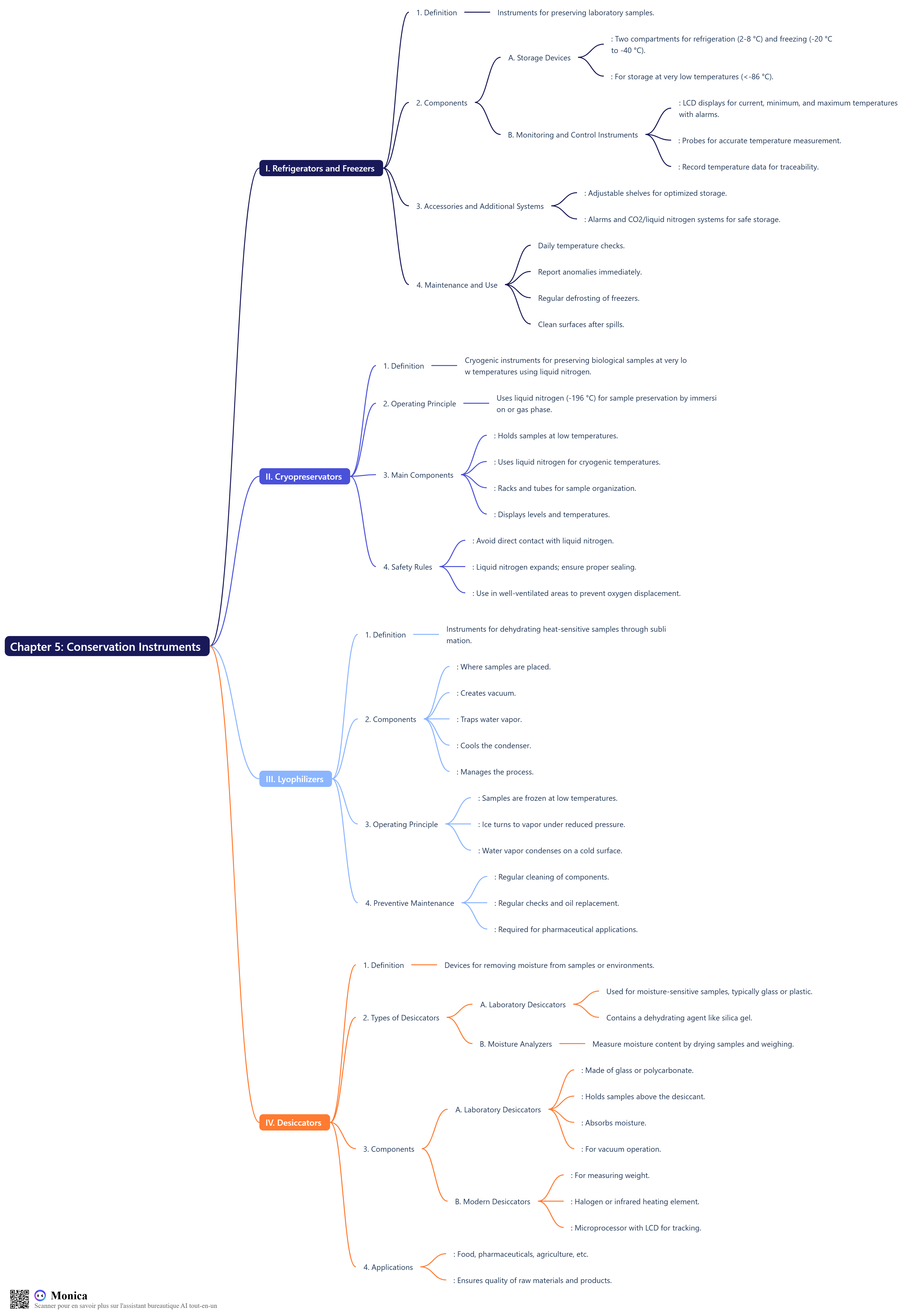 In this chapter, we will explore various conservation instruments essential for preserving laboratory samples and biological materials. Understanding the functionality and importance of these instruments is crucial for maintaining the integrity of sensitive samples in scientific research. We will examine the different types of refrigeration systems, cryopreservators, lyophilizers, and desiccators, detailing their components, operating principles, safety guidelines, and maintenance practices. By the end of this chapter, readers will have a comprehensive overview of the tools and techniques used in sample conservation, highlighting their significance in laboratory settings.