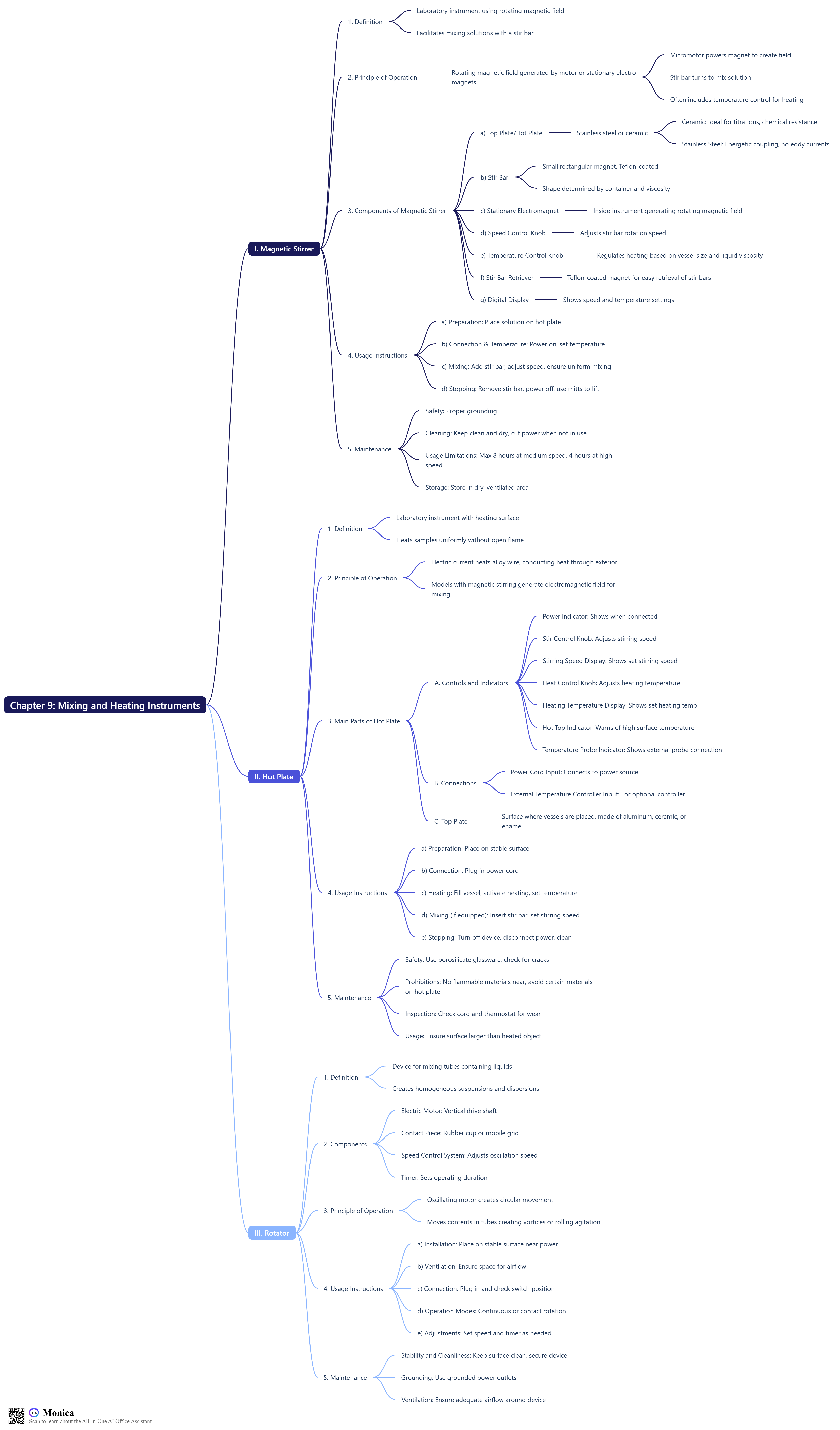 In this chapter, we focus on the essential laboratory instruments used for the mixing and heating of samples, which are fundamental processes in chemical and biological experiments. These devices are designed to ensure the homogeneity of solutions and to provide precise temperature control to facilitate various reactions.