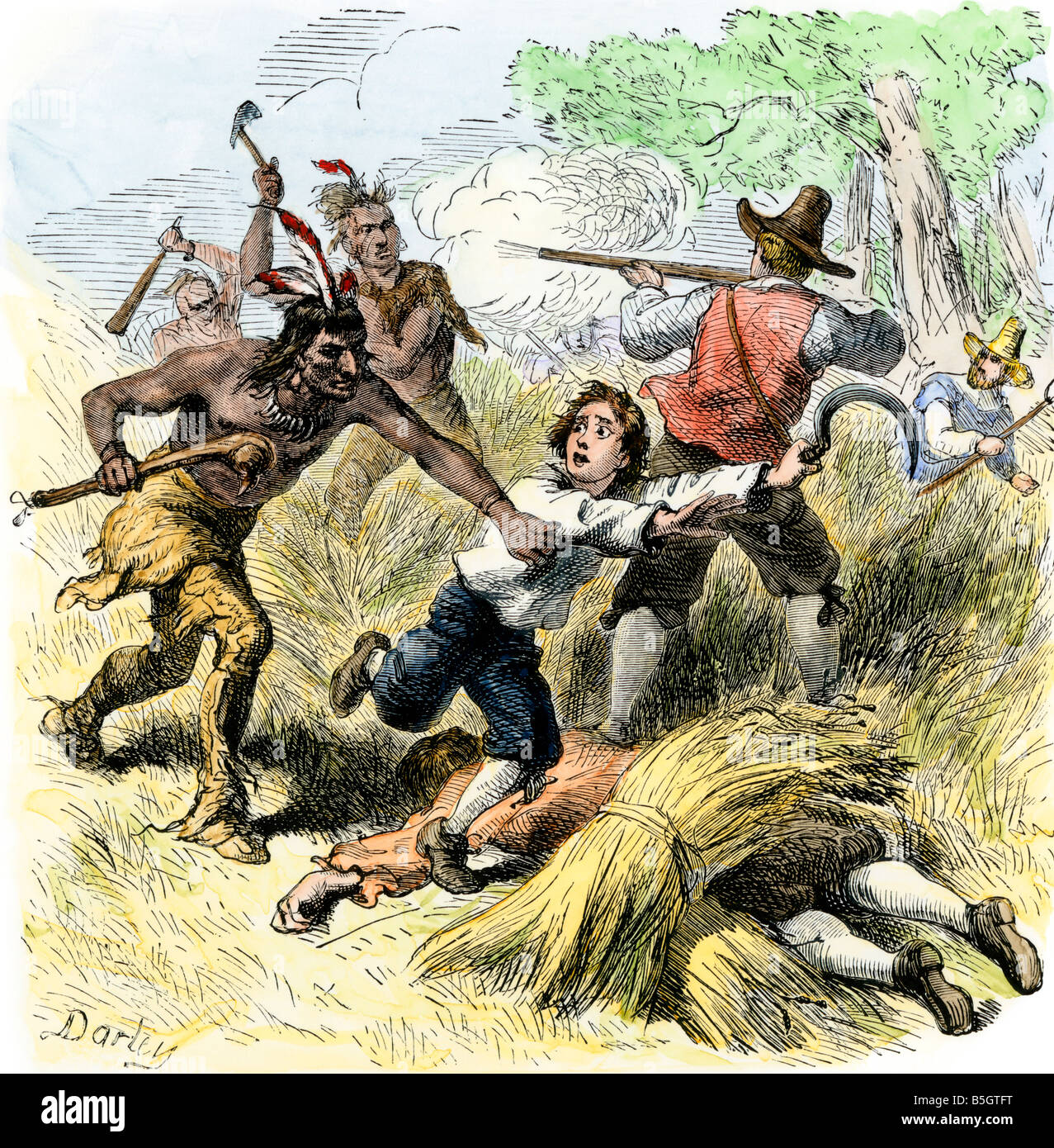 - The Pequot War (1636-1638):* A conflict in New England where English settlers, allied with the Narragansett and Mohegan tribes, fought against the Pequot people, leading to the near destruction of the Pequot tribe.
