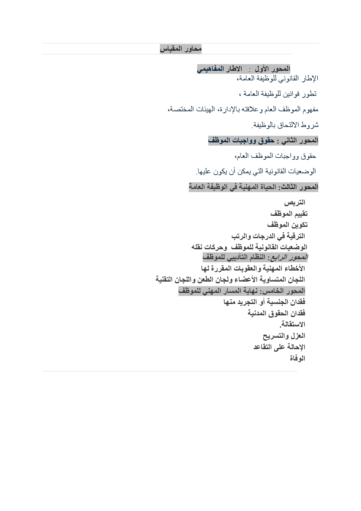 • المحور الثالث: الاوضاع القانونية للموظف وحركات نقله