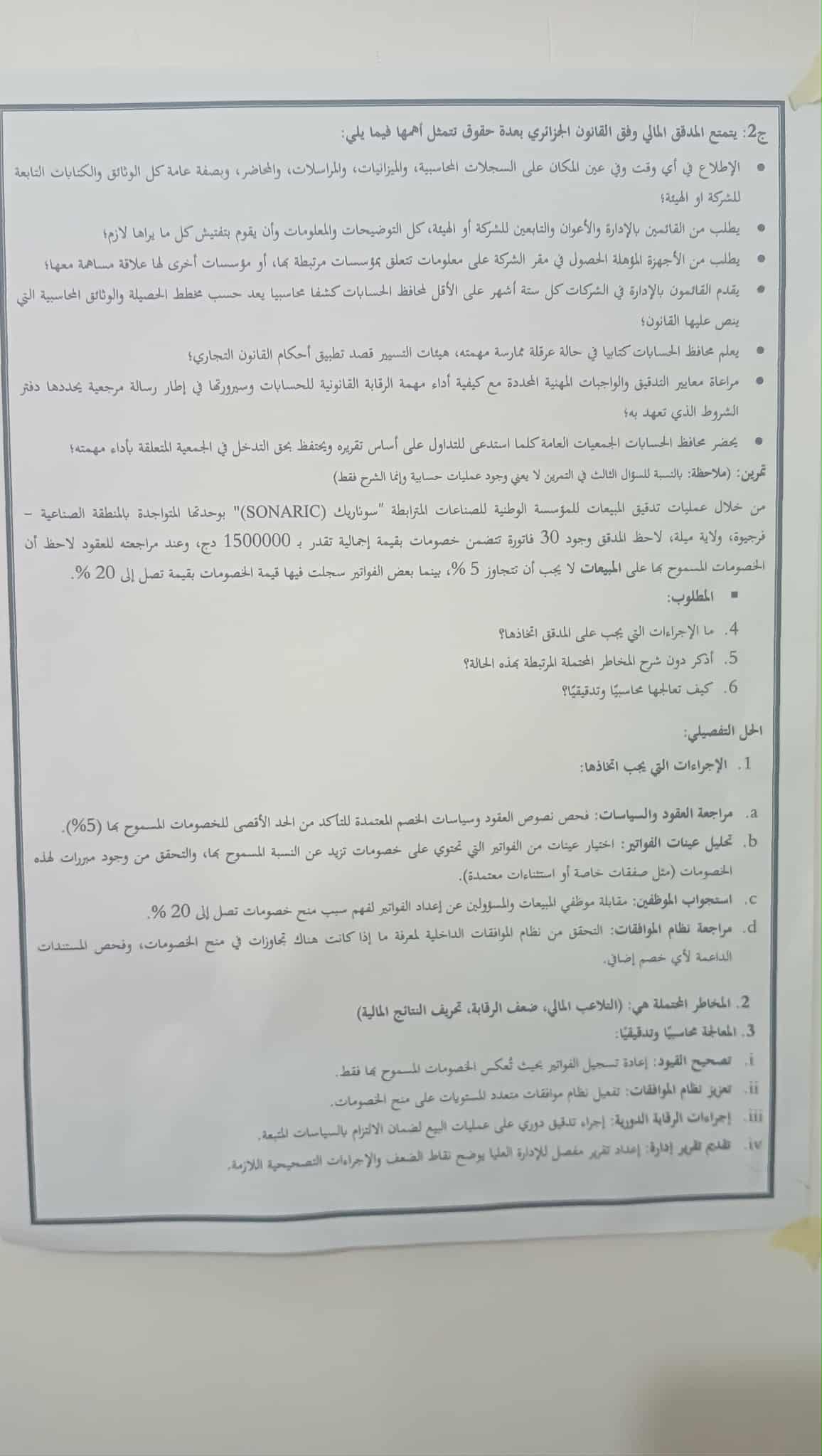 الإجابة النموذجية لإمتحان التدقيق المالي