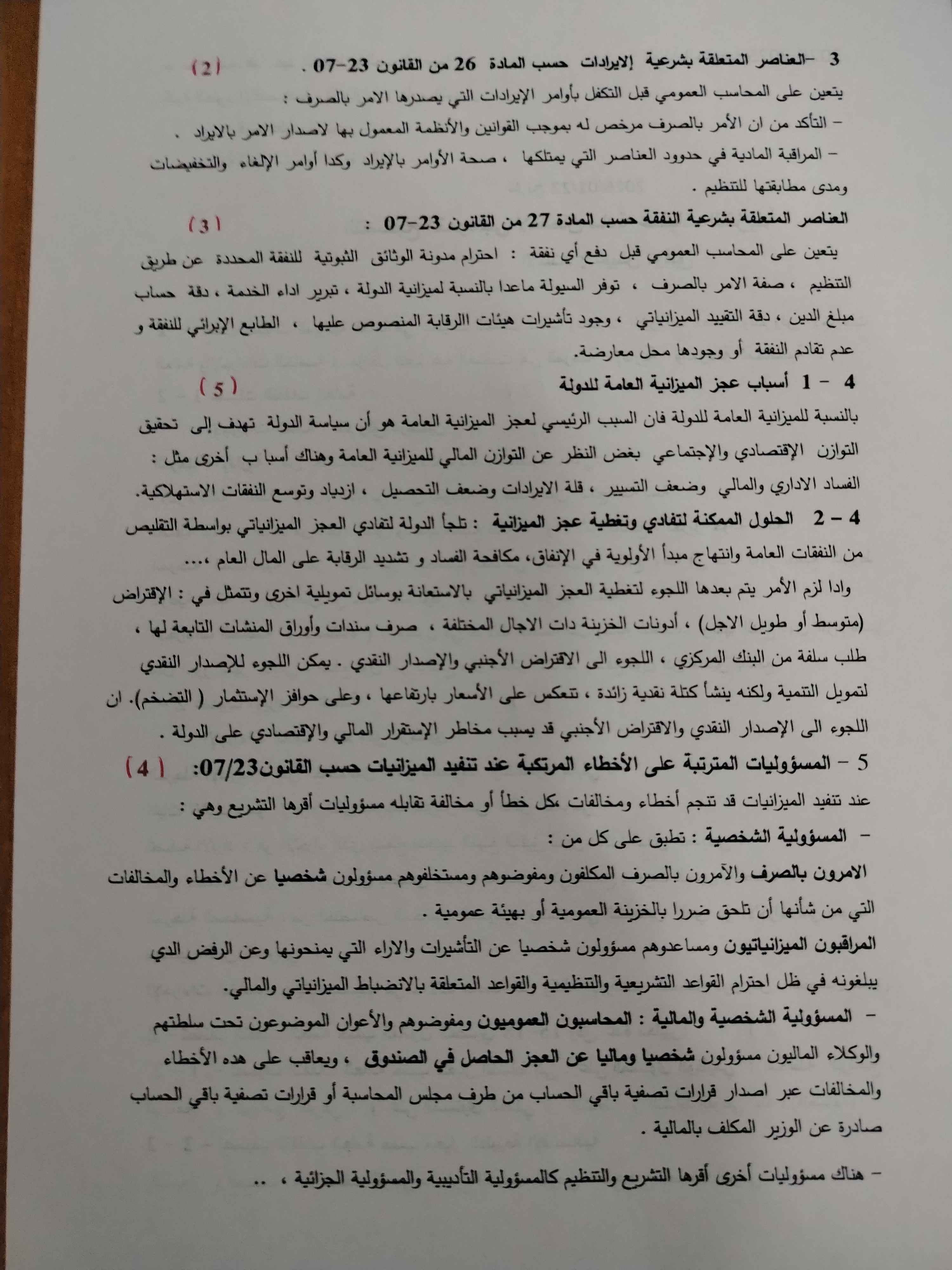 المحور الثالث : الأعوان المكلفون بتنفيذ الميزانية والمبادئ الأساسية للميزانية.